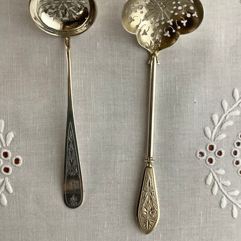 Nydelig vintage solvplett sukker og fløtesett, trolig produsert av danske G.P. (Guldsmed Petersen) mellom 1935 og 1955. Klassisk nybarokk/rokokko-stil med flotte detaljer. Jeg tror brettet er av en annen produsent, altså ikke originalt