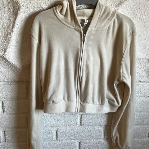 Lekker hettejakke i kort modell og vide ermer str XL.