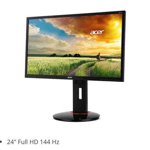 Acer 24-tommers skjerm med flere tilkoblingsmuligheter inkludert VGA og HDMI. Skjermen har en svart ramme og justerbart stativ, og egner seg for generell bruk til datamaskin eller til gaming.