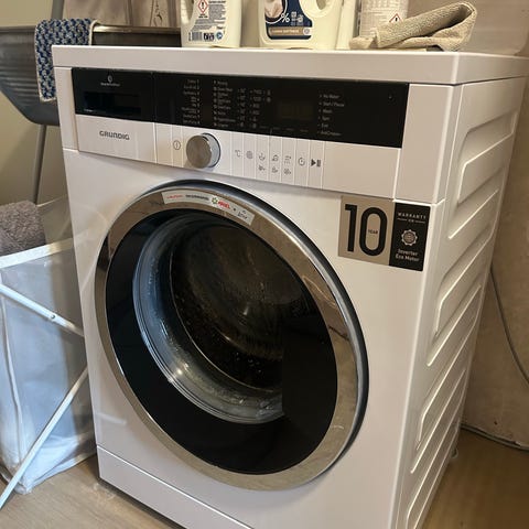 Pent brukt Grundig vaskemaskin selges , brukt av 1 person i underkant av 3 år. Høyde 84 cm, Bredde 60 cm, Dybde 49,6 cm.