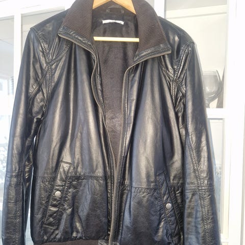 Vailent skinnjakke i størrelse M for herre. Jakken er svart og laget av 100 % skinn. Den har et fôr av bomull og polyester. Jakken har flere lommer og en innerfôr med mønster.