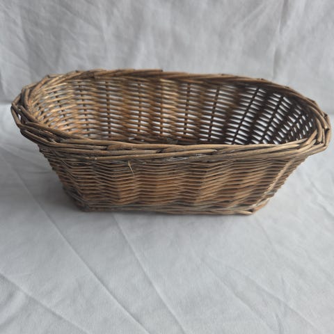 Metallbøtte med tauhåndtak og flettet stråkurv