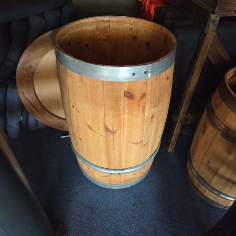 Har to sinkbøtter og en stråkurv. Selger alt for 200