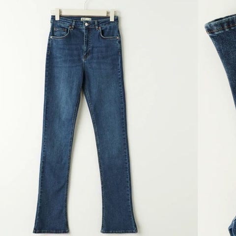 Gina Tricot Low Waist Bootcut jeans i blå denim. Størrelse M med midjevidde W28. Designet for kvinner med bootcut passform og lav midje.