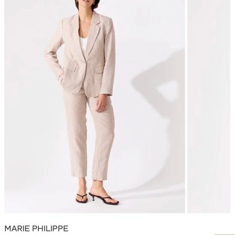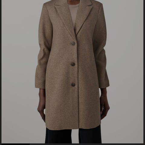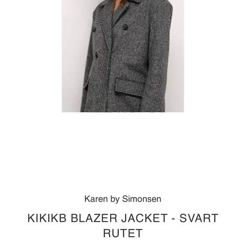 Donna Ayla herringbone blazer i grå farge, laget av ullmateriale. Blazeren har dobbelspent design med sorte knapper, brede skuldre med skulderputer, og klaffelommer i front. Passformen er rett og oversized. Størrelse 36