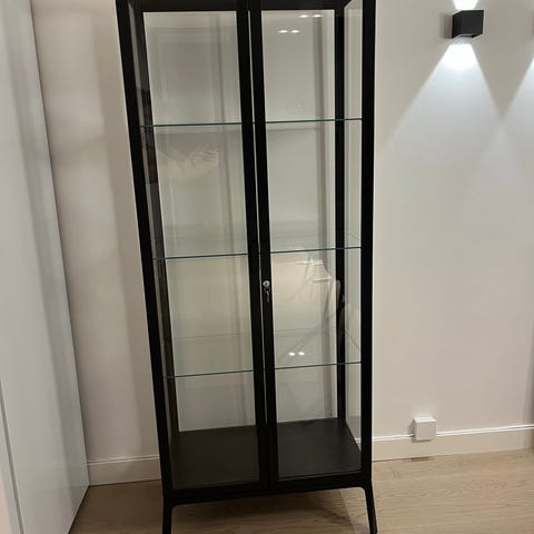 Selger Milsbo vitrineskap i sort i fargen antrasitt kjøpt fra IKEA mai 2025.