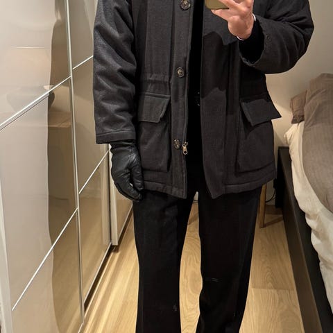 Den har detaljer som at alle knapper har loro piana logo på seg selv om de er gjemt på innsiden. Virkelig en jakke som bør sees.