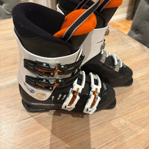 Tecnica Mach 1 alpinstøvler i blå farge med fire spenner for justering. Støvlene har en robust konstruksjon og er designet for alpint bruk. Står i Lomen, 30 min fra Beitostølen.