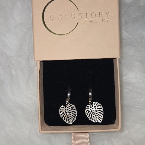 Gingkoblad-øredobber. Hvis jeg husker riktig, tror jeg de er øredobber belagt med messinggull, men det var lenge siden jeg kjøpte dem, og esken er borte. De er nye. Aldri brukt, da jeg synes de er for kalde her. Veldig vakre. De er ikke for tunge, men de har vekt, men de skal ikke trekke for mye i ørehullet. Ganske perfekte å ha på seg. Gingko er et vakkert og populært design.