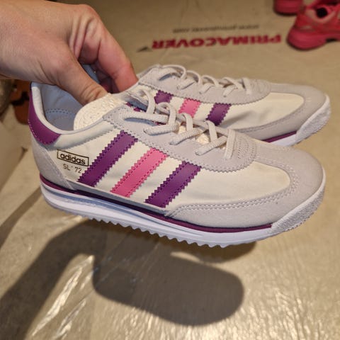 Pent brukte sneakers fra Adidas i str 34 selges! Normal i størrelsen. Vi har brukt skoene til spesielle anledninger så de er veldig lite brukt. Brukt av et barn.