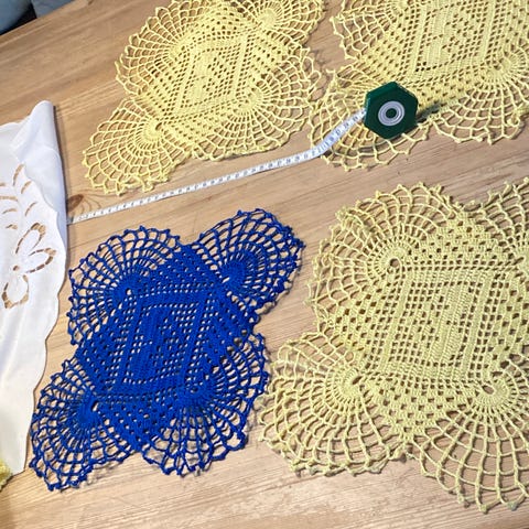 Hvit er 36 høy, rosa er 39 høy og de tre hudfargede er 33 cm høye. Disse kan jo strekkes litt i våt tilstand når de strykes. Kr 65 pr stk. sender i konvolutt og porto kommer i tillegg
