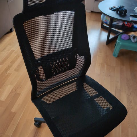 Hev og senk pult i robuste materialer, pent brukt. Ergonomisk kontorstol, pris 7000kr ny, noe slitasje på armlene (se bilde).