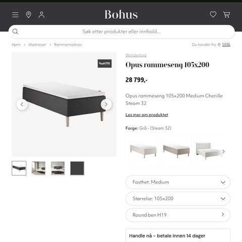Wonderland Opus base med pocketfjær og finjustering 180x200cm. Vaskbar trekk. Hvitoljet eik ben. Pique hodegavl 180x150cm.