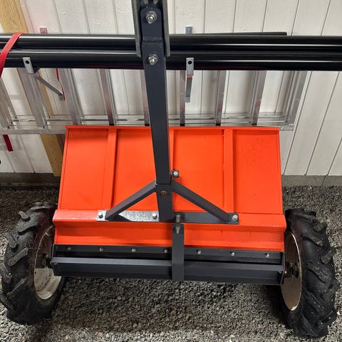 Har nye plater i kasse. Finer og alu dørk. Har vajer tipp på kasse. Tømmerstaker følger med.