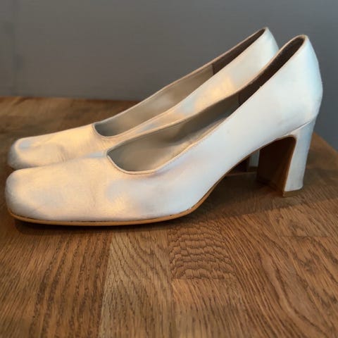 Brudesko fra Menbur selges da de ikke passer. Brukt 2 ganger. 1 gang i mitt eget bryllup og 1 gang i et annet (ble brukt kun noen timer tilsammen da de ble tatt av mye underveis).
