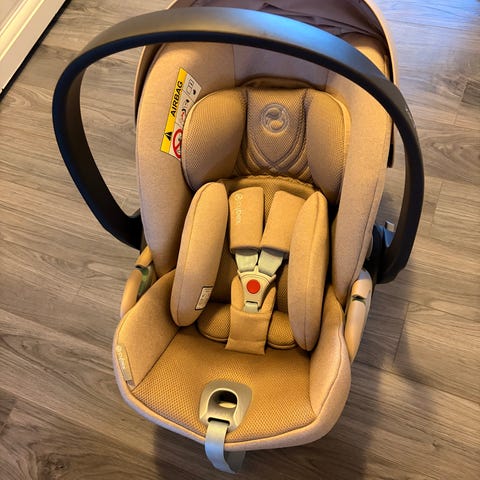 Babybilstol fra Cybex med full liggestilling når det brukes som en del av et reisesystem. 180° rota