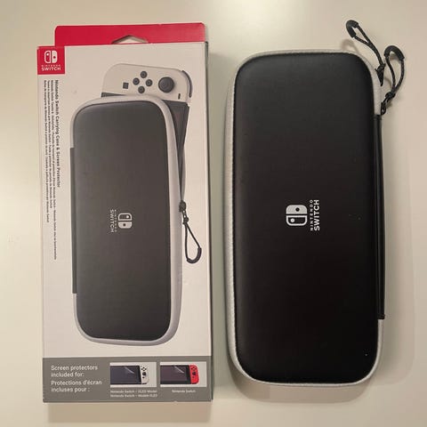 Nintendo Switch beskyttelsesetui i svart farge. Etuiet er laget for å beskytte Nintendo Switch-konsollen under transport og oppbevaring. Inkluderer også en mikrofiberklut for rengjøring av skjermen.