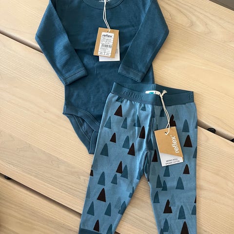 Reflex ull sett i brun farge, størrelse 74, unisex. Settet består av genser med hette og bukse, laget i ullmateriale som gir varme og komfort.