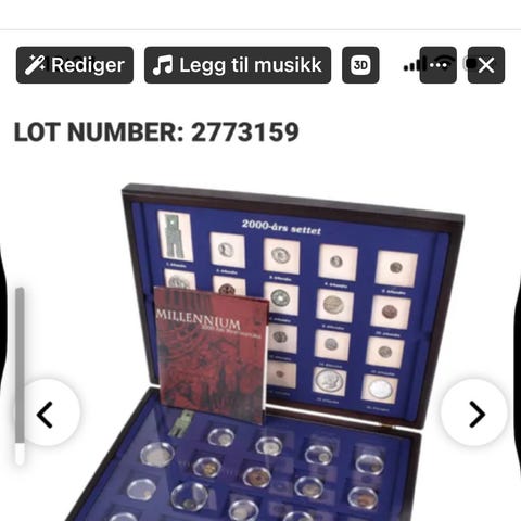 12 Sølvmynter Lillehammer OL 1994 med pin som fulgte med i egen eske.