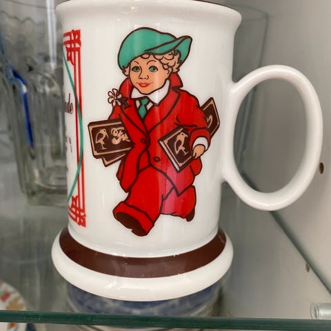 8 sett med kopp og asjett nr 1,2,3,4,5,6,7,8. 3 jubileums krus, fat og mugge.