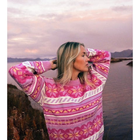 Inspirert av Lofotens vakre solnedganger. Kun brukt to ganger. Originalpris var 3499 kroner. Størrelse XL. Jeg flytter til utlandet og trenger ikke dette lenger.
