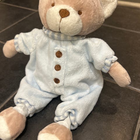 Nydelig og barnevennlig Tinka Baby bamse med pysj, perfekt for de aller minste 🩵