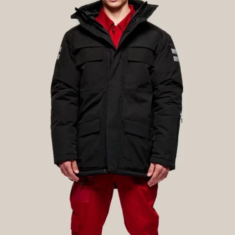 G-LAB jakke/frakk i størrelse XL for menn. Er svart og laget med vanntett, pustende laminat og tapede sømmer. Den har et unikt design som kombinerer komfort og stil, egnet for bruk i ulike værforhold.