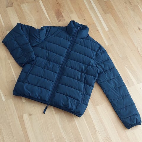 Ubrukt blå, praktisk boblejakke som lyser i mørket i str. S selges for 400 kr.