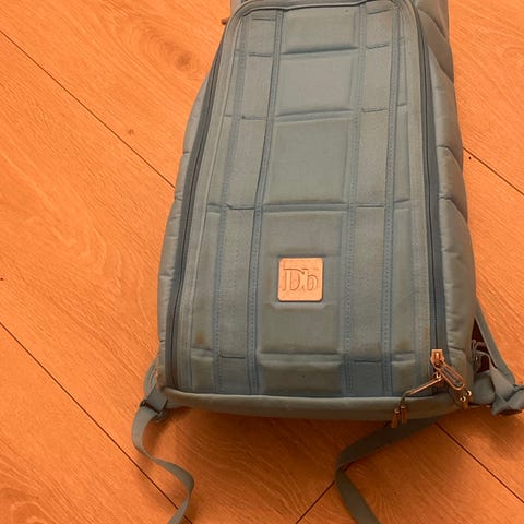 Osprey ryggsekk i svart farge. Ryggsekken har justerbare skulderstropper og flere lommer med glidelås for oppbevaring.