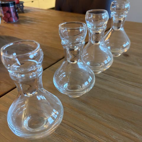 8 stk aqvavit kuvert karafler m glass fra Hadeland. Brukt 1 gang selges kr 400,- samlet. Hentes i Horten