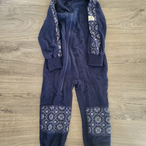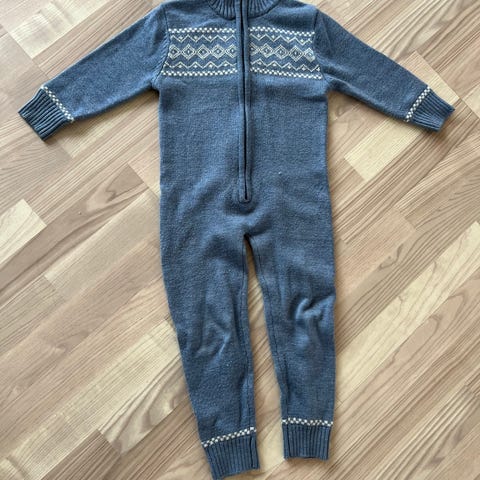 Joha ull heldress i blå farge, størrelse 110. Laget av ull, egnet som et varmt og isolerende plagg for barn - kjempegod. Den er godt brukt, som dere ser på bildene, men har masse bruk igjen.