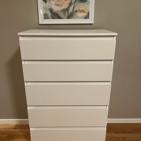 Malm kommode fra IKEA. Noen bruksmerker, se bilder. Alle skuffene fungerer som de skal.