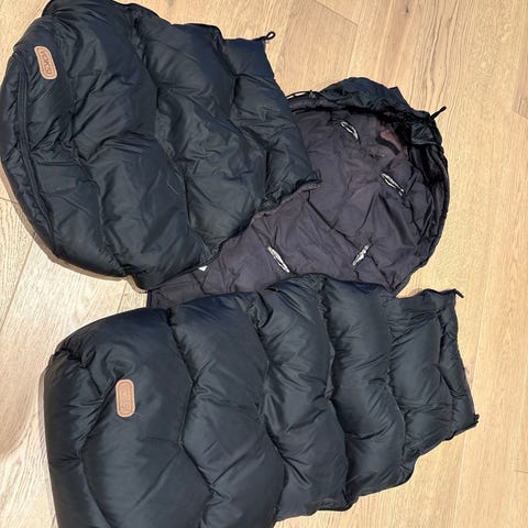 Glidelåsen er ødelagt, men den fungerer fortsatt uten problemer når den åpnes og lukkes og hode lıtt solbrent forsatt god og varm pose vasket ny.