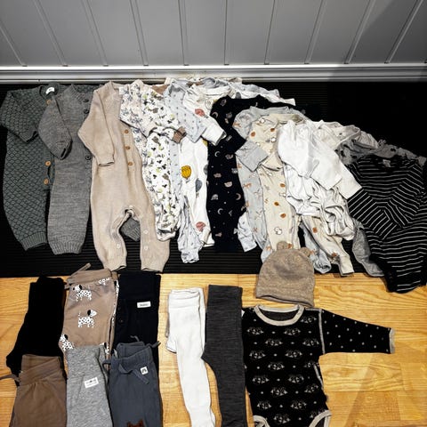 Veldig stor klespakke av babyklær for gutt i størrelse 68 (6-9 måneder), flerfarget. Inkluderer ulike plagg med forskjellige farger og mønstre, egnet for små barn. Bodyer med lange og korte ermer, bukser, gensere, sokker, luer, pyjamas, t-shirter, osv…Kan hentes i Ås ved avtale.