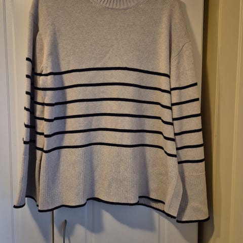 Nydelig genser i 100%kashmir.farge kamel med sorte striper.str XL/XXL.brukt 1 gang.som ny fra vendela wear