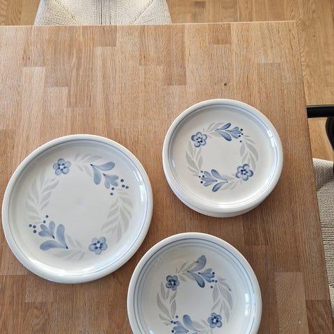 Fremstår i svært god stand. Kun noen små bruksmerker fra kniv på fatet.
