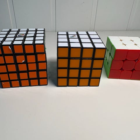 QiYi Valk 3 Elite M Speedcube 3x3 med magnetisk justering og fargekodede sider for bedre orientering under løsning. Cube er designet for konkurransedyktig speedcubing og har en størrelse som passer standard 3x3-puslespill. 450kr for alle. Gi bud! 3x3, 2x2, skewb og Rubiks snake.