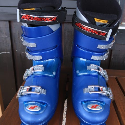 Dalbello CX 60 alpinstøvler i størrelse 22,5 med hvit og grønn farge.