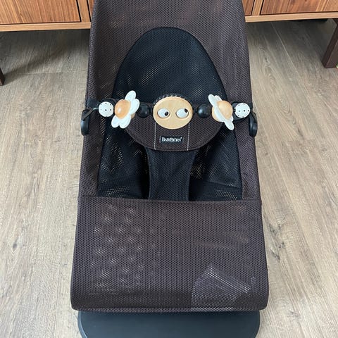 Babybjörn Babysitter i rosa stoffmateriale. Designet for små barn med sikkerhetssele.