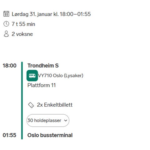 Trondheim 18:00 til Oslo bussterminal 01:55