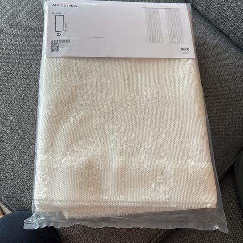 2 stk gardiner i beige selges for 400kr totalt. Kjøpt på fargerike i 2021.