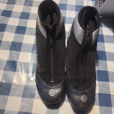 Alpina skisko i størrelse 39 med svart farge. Skoene har snøring og polstret innside for komfort.