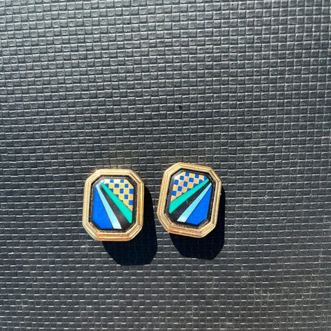 Sølv 925 emalje mansjettknapper turkis rød art deco