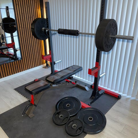 Selger meget pent brukt skråbenk. Justering på både rygg og sete.