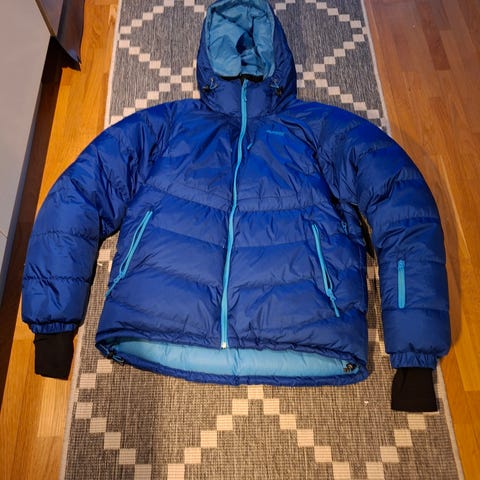 Bergans dunjakke for menn, størrelse XL. Størrelsesmerket er klippet ut, så det kan være XXL. Flyttet til utlandet, så trenger ikker lenger denne fine jakken.