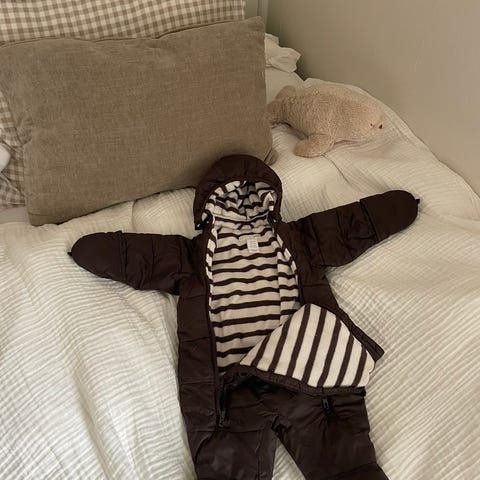 Kun brukt av en baby i styre og røykfritt hjem. Ingen sykelige skader. Polarn O. Pyret heldrakt i størrelse 68 for barn. Fargen er brun, og designet for både jenter og gutter (unisex).