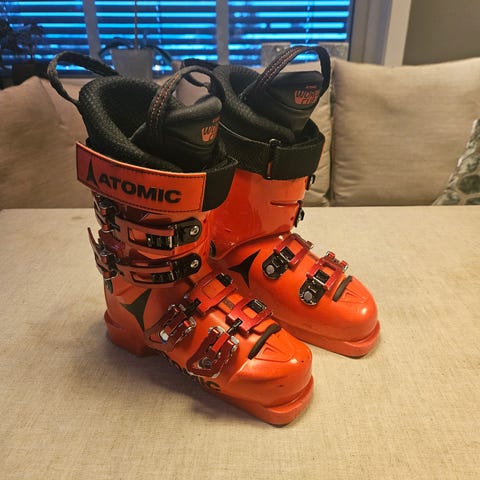 Pent brukte alpinsko, alpinstøvler til salgs i 22.5 størrelse, 36.5 euro.