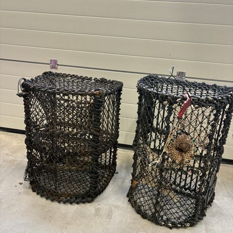6 stk krabbe teiner og to små med 4 kuler og tau