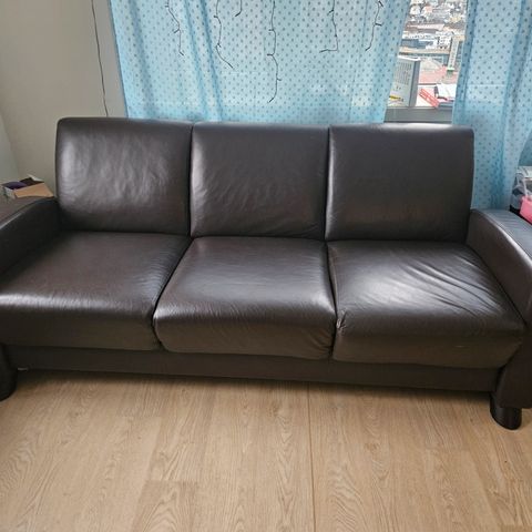 Fin sofa som har stått på et konto. Den er 5 år gammel men lite brukt grunnet få ansatte på kontoret, og perioder der lokalet og møbler har stått helt ubrukt
