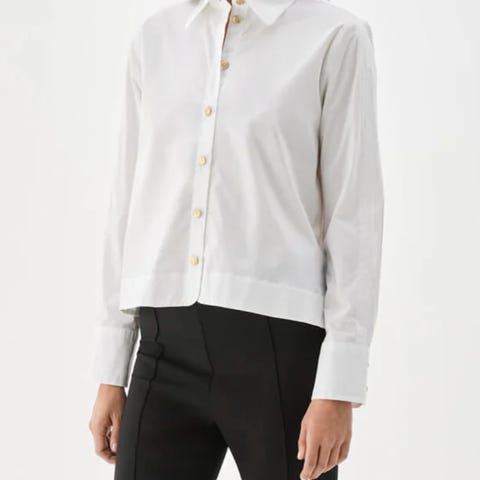 Kjole fra Gestuz, knapt brukt. Størrelse L. Rekker under kneet til M det på leggen, alt etter hvor høy du er. Vidt skjørt. Underskjørt. Knapper i front på topp. Løst knyteskjerf som også kan brukes som belte. Lange ermer. Viskose.